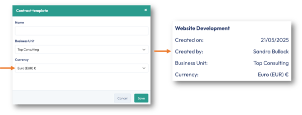 Ensure that new contracts created from a template automatically apply the correct currency.