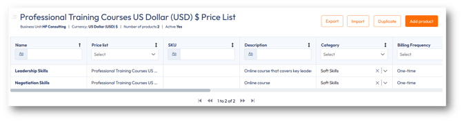 Product and price list configuration: