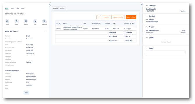- Approve and send: PSOhub will create, approve, and send invoices automatically on schedule.