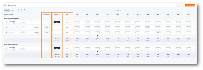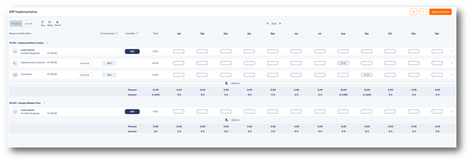 When planning resources over a timeline, it’s important to treat each phase or deliverable (Contract Line) individually.