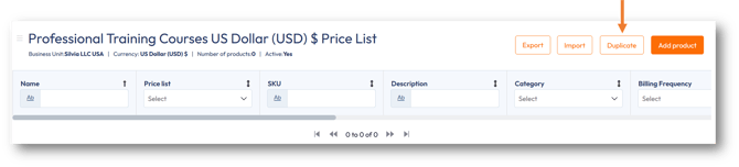If you want to use the same price list across multiple business units and/or currencies, you can duplicate a price list.