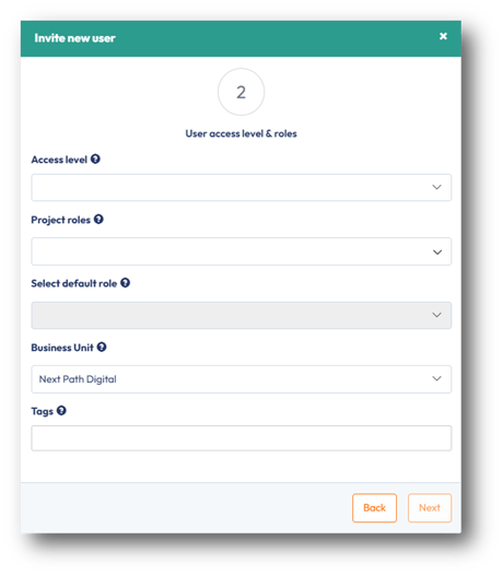 Step 2 - User access level & roles