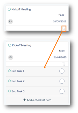 In the Plan view, the checklist is displayed with an icon. When you click on the icon, the task list is shown.