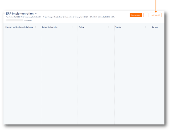 Create tasklists to organize your tasks and milestones into a work breakdown structure (WBS). Tasklists help structure your Timeline into easy-to-see phases or deliverables.