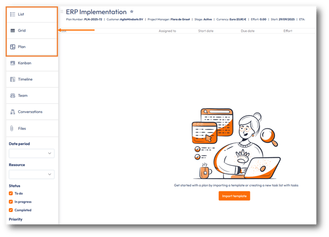 In the left-hand menu, go to the List, Plan, or Grid view.