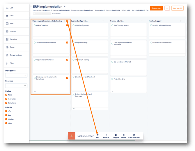 If task dates aren’t finalized, or if you want to quickly populate the Timeline, you can bulk-assign dates to multiple tasks at once using the Bulk Edit function.
