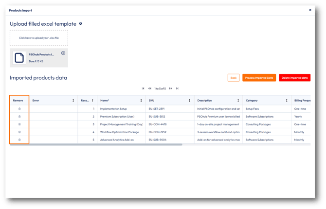 PSOhub will display a preview of the data detected in your file. Check the field values (e.g., price, billing frequency) look accurate.