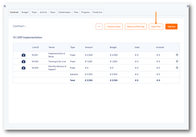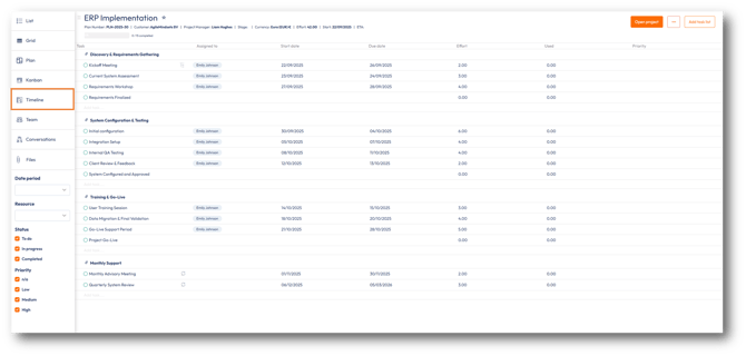 The plan for your project appears. On the left-hand side menu, select Timeline.