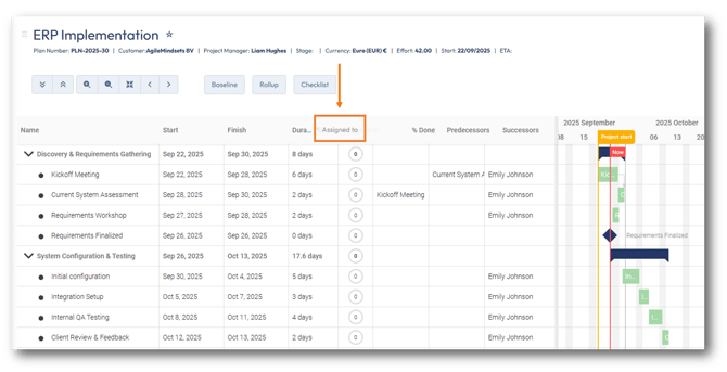 If tasks are delayed or rescheduled, the baseline remains visible for comparison.
