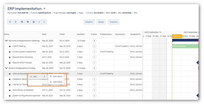 To create a new task right-click an existing task and select Add, Add task above or Add task below.