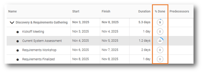 Once your Timeline is set up, you can manage your entire project plan directly by interacting with tasks on the Timeline.