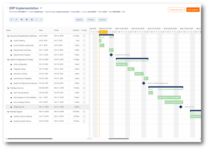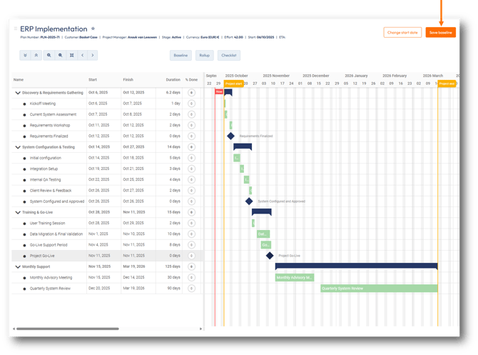A baseline is like a snapshot of your plan at a specific point in time. It allows you to compare the original schedule against what is actually happening.