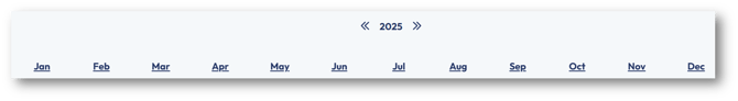 In this view, the calendar year is broken down by months, from January to December. To navigate to a past or future year, use the left or right arrow buttons. In the fields below each respective month, you can enter the number of hours that you expect to complete towards that particular contract line. To easily navigate from one month to another, use the Tab key on your keyboard. Important: As hours are entered on the Month View, these hours will be evenly split across all weeks of the month and all days of the month. After entering hours in the Monthly View, check the Week and Day Views to confirm the hours are distributed as expected. Important: To remove a value in the grid, you must enter a 0 in the field to override the previous value. Pressing the backspace or Delete will not remove the current value. |