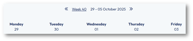In the Week View, the month selected is broken down into weeks. To navigate to a past or future month, use the left and right arrow buttons. Note: For some months, there may be weeks which overlap with other months. Such weeks will appear in the Week View for both months. Important: As hours are entered on the Week View, these will be evenly split across all days of the week and will also contribute to the planned hours for the month. It's a good idea to check both the Day and Month Views once hours have been entered on the Weekly View. Important: to remove a value in the grid, you must enter a 0 in the field to override the previous value. Pressing the backspace or Delete will not remove the current value. |