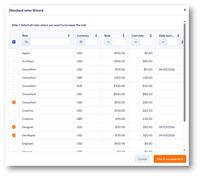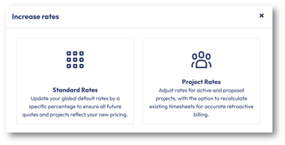 Easily adjust project and standard role rates with the new percentage-based update, saving time and ensuring accurate invoicing