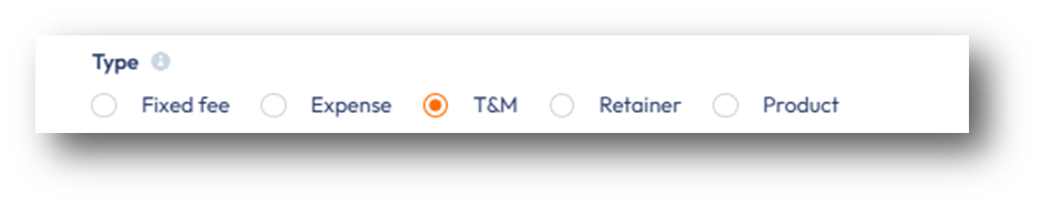 PSOhub support five types of contract lines: Fixed Fee, Expenses, T&M (Time and Material), Retainer and Product.
